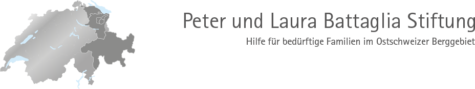 Die Peter und Laura Battaglia Stiftung mit Sitz in Wil SG, unterstützt bedürftige Familien im Berggebiet der Kantone Appenzell Ausserrhoden, Appenzell Innerrhoden, Graubünden, St. Gallen und Thurgau.